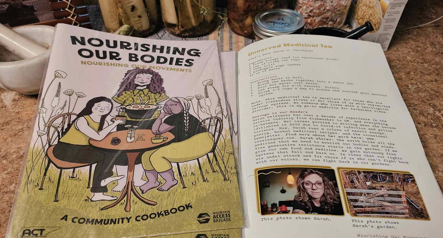 One of my medicinal teas was published in Nourishing Our Bodies, Nourishing Our Movements Community Cookbook, which was put together by Abortion Care Tennessee to fundraise abortion access in northern Tennessee. To get your copy today, check out Abortion Care Tennessee.