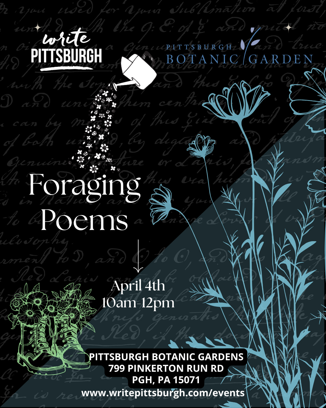 On April 4th, I am hosting a creative writing workshop, Foraging Poems, at The Pittsburgh Botanic Garden with Write Pittsburgh. If you’re in the area, please join!